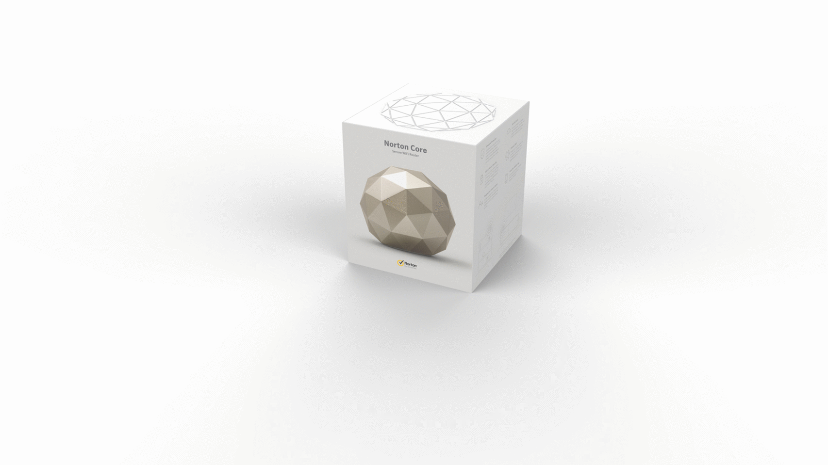 NORTON CORE'S unique mathematical design has a sculptural presence and becomes functional décor, allowing users to place it out in the open where the best WiFi can be broadcast. Norton Core is available in a series of refined lifestyle driven colors, offered in Titanium Gold or Granite Gray.